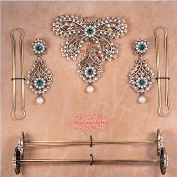 Aderezos de fallera y Joyería tradicional. También pendientes de barquillo, pendientes de chorro, pendientes de tres, pendientes de lazo, broches, pinchos de bola, agujas para mantilla, colgantes y cruces.