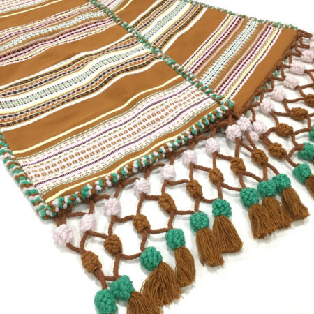 Manta morellana fondo tostado tramado con rosa y verde. Auténtica manta morellana adecuada para vestir de fallero, tradicional o recreaciones de época.